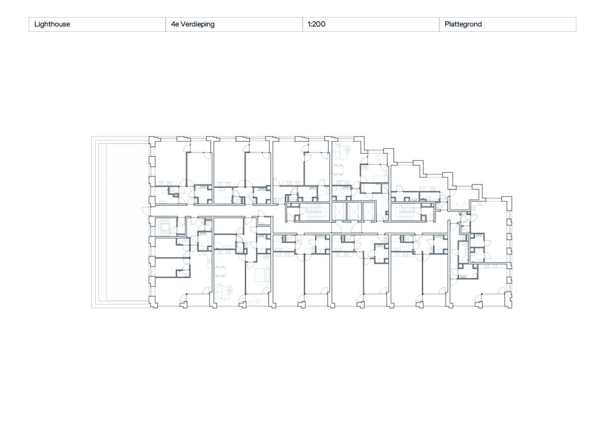 Die Unterkellerung des Gebäudes schafft nicht nur Platz für eine Fahrradgarage und Abstellräume, sondern auch für die Technik, sodass der Sockel transparent bleiben kann und Offenheit vermittelt. Dieser Sockelbereich umfasst zwei Etagen mit öffentlichen Nutzungen, die zur Belebung des Platzes Machinekamerplein beitragen. Lighthouse liegt in fußläufiger Entfernung zum Bahnhof Eindhoven Strijp-S. Autostellplätze gibt es im gemeinschaftlichen Mobility Hub in unmittelbarer Nähe. Gemeinschaftsdachterrassen in verschiedenen Höhen schaffen Orte der Begegnung und alle Wohneinheiten haben zudem einen eigenen französischen Balkon oder Wintergarten.