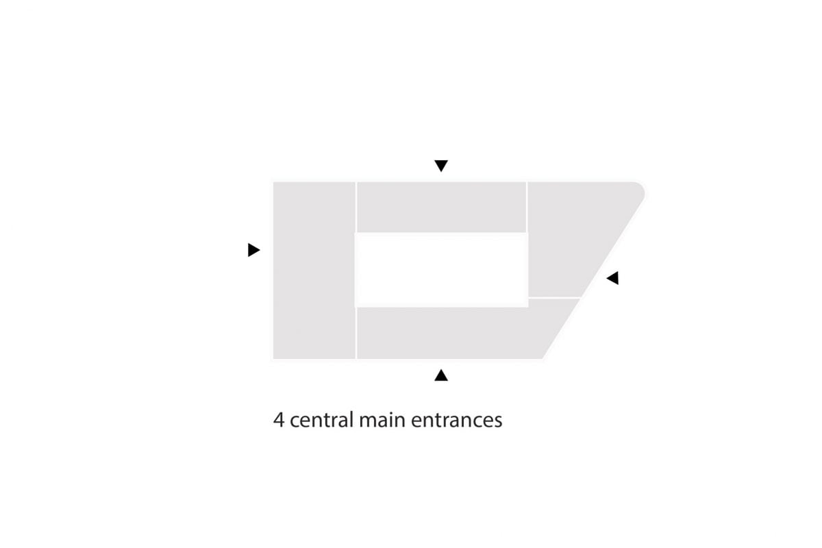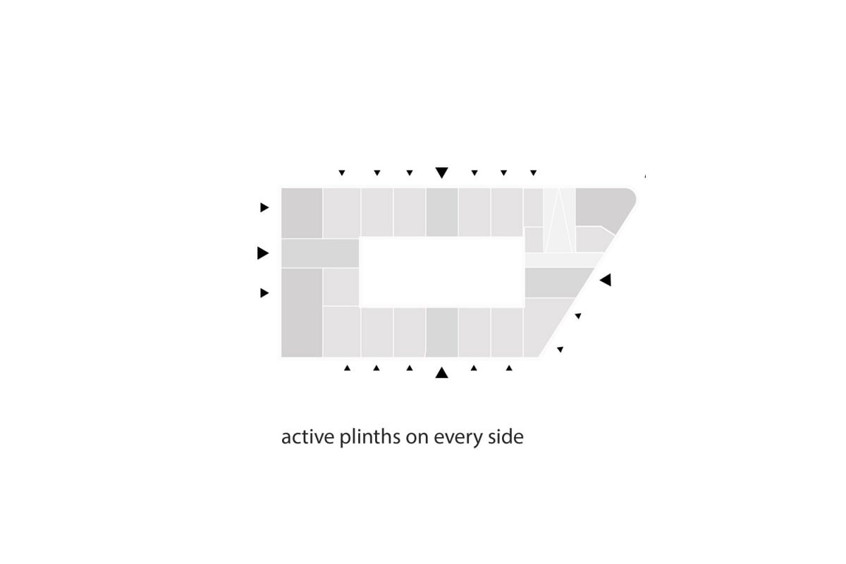 Het stadsblok bestaat uit vier gebouwen, ontworpen door FARO en De Zwarte Hond, wat zorgt voor een gevarieerd en dynamisch geheel. Ook binnen de gebouwen van dezelfde architect is er sprake van diversiteit. Zo ontstaan vier unieke gebouwen binnen het blok, elk met een eigen ritmiek, plintuitstraling, kleurgebruik en plasticiteit. Aan het Park Leeuwensteyn zijn ruime aangehangen balkons, in de smalle straten intieme loggia’s en aan het Berlijnplein een gemetselde rastergevel met daarachter terrassen. De doorlopende plint zorgt voor de continuïteit van het blok als geheel.