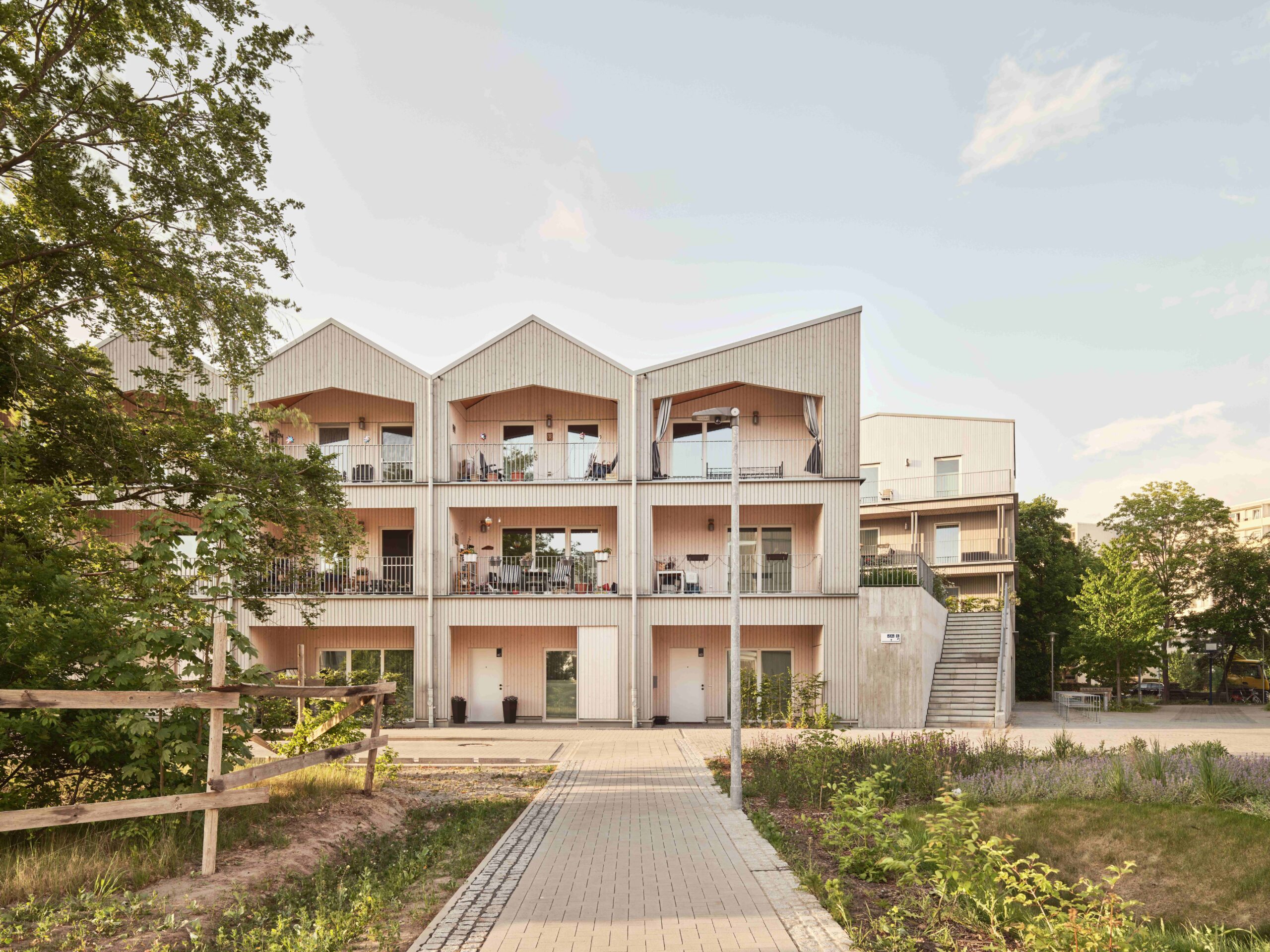 Al op stedenbouwkundige schaal zijn bouwvolumes, gebouwhoogtes en principes voor het daklandschap ontwikkeld die aansluiten bij de bijzondere strenge regelgeving voor houten constructies en duurzame isolatiematerialen. Verder is er gewerkt aan een innovatief mobiliteitsconcept voor een autoluwe buitenruimte en aan een natuurlijk decentraal concept voor de opvang van regenwater.