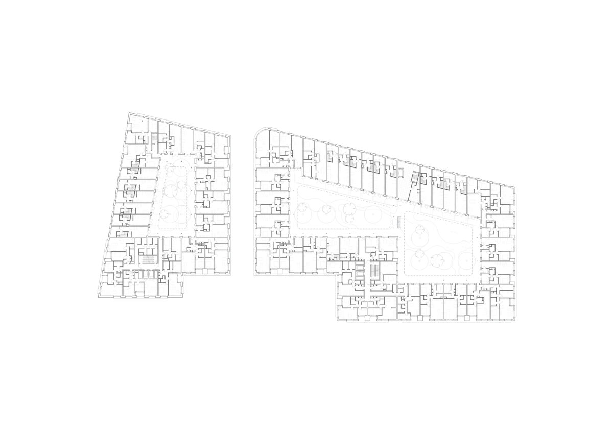 Het ensemble bestaat uit twee blokken met twee woontorens, van 11 en een van 13 bouwlagen, onderbroken door een winkelstraat. De plint, met een mix van een DEKA-supermarkt; dagwinkels en horeca en is afgewerkt met hoogwaardig prefab beton. Samenhang ontstaat door het toepassen van een eenduidig kleur- en materialenpalet en dat elke zijde van ensemble op zijn eigen wijze reageert op de context. De daktuin op de tweede verdieping, ontworpen door De Urbanisten, laat bewoners van de buitenlucht genieten en zorgt voor een aangename leefomgeving en collectiviteit.
